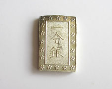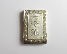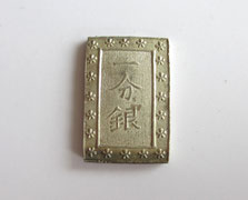 "分"の書体は『入分様』で、"銀"の書体は『角下がり』です。いずれも初鋳の額縁の一分銀によく見られるものです。このZoも面はほぼ額縁、背は少し欠けますが、全体として初鋳の丁寧な作りとなっています。地肌には未使用の味がしっかり残っている大変綺麗な一分銀です。この機会にいかがでしょうか。