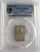 PCGS MS64+ ですが、完全にアンダーグレードで、MS65が当然の見事な状態です。面背とも安政一分銀にありがちな"雨降り"は全く無く、文字と地肌は製造時の状態を維持する素晴らしい状態です。文字の打刻も素晴らしく、ほぼ完璧な一分銀ではないでしょうか。拡大画像からその素晴らしい状態を御確認下さい。この機会にいかがでしょうか。